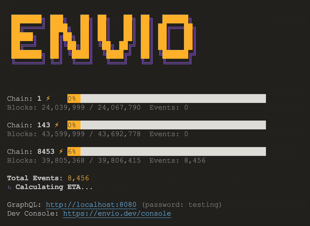 Envio is a multi-chain EVM blockchain indexer for querying real-time and historical data. If you’re working on a Web3 project and want a smoother development process, Envio’s got your back(end). Check out our docs, join the community, and let’s talk about your data needs.